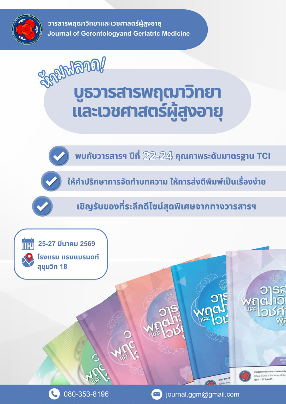 ขอเชิญร่วมงานประชุมวิชาการสุดยิ่งใหญ่แห่งปี! สมาคมพฤฒาวิทยาและเวชศาสตร์ผู้สูงอายุไทย ขอเชิญแพทย์ พยาบาล บุคลากรสาธารณสุข นักวิชาการ และผู้สนใจทุกท่าน เข้าร่วม งานประชุมวิชาการประจำปี 2569 วันที่ 25-27 มีนาคม 2569 โรงแรมแรมแบรนดท์ กรุงเทพฯ (Hybrid Meeting - เข้าร่วมได้ทั้ง Onsite และ Online) ภายใต้หัวข้อสุดทันสมัย “Advancing Current Practices to Shape the Future of Aging and Geriatric Health” ก้าวทันองค์ความรู้ปัจจุบัน เพื่อร่วมกันออกแบบอนาคตของการดูแลผู้สูงอายุไทย